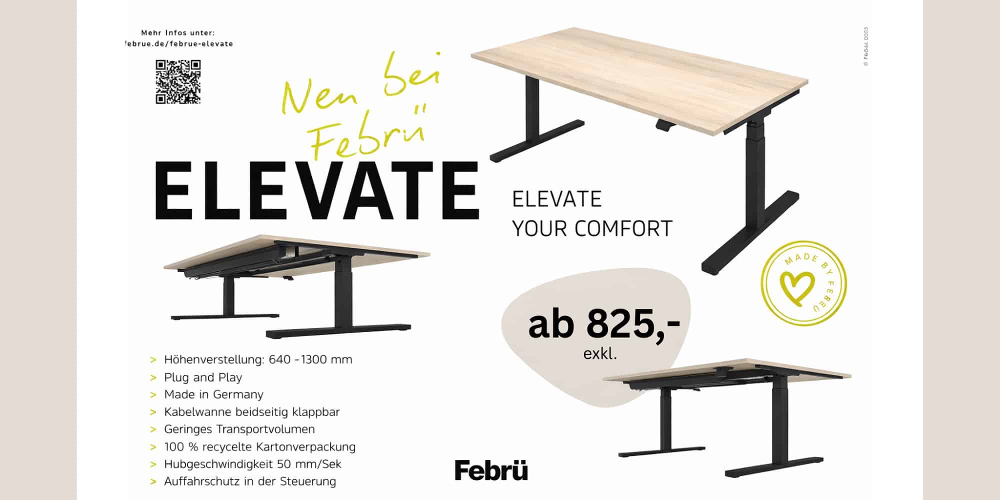 Febrü Elevate – der elektromotorisch höhenverstellbare Schreibtisch
